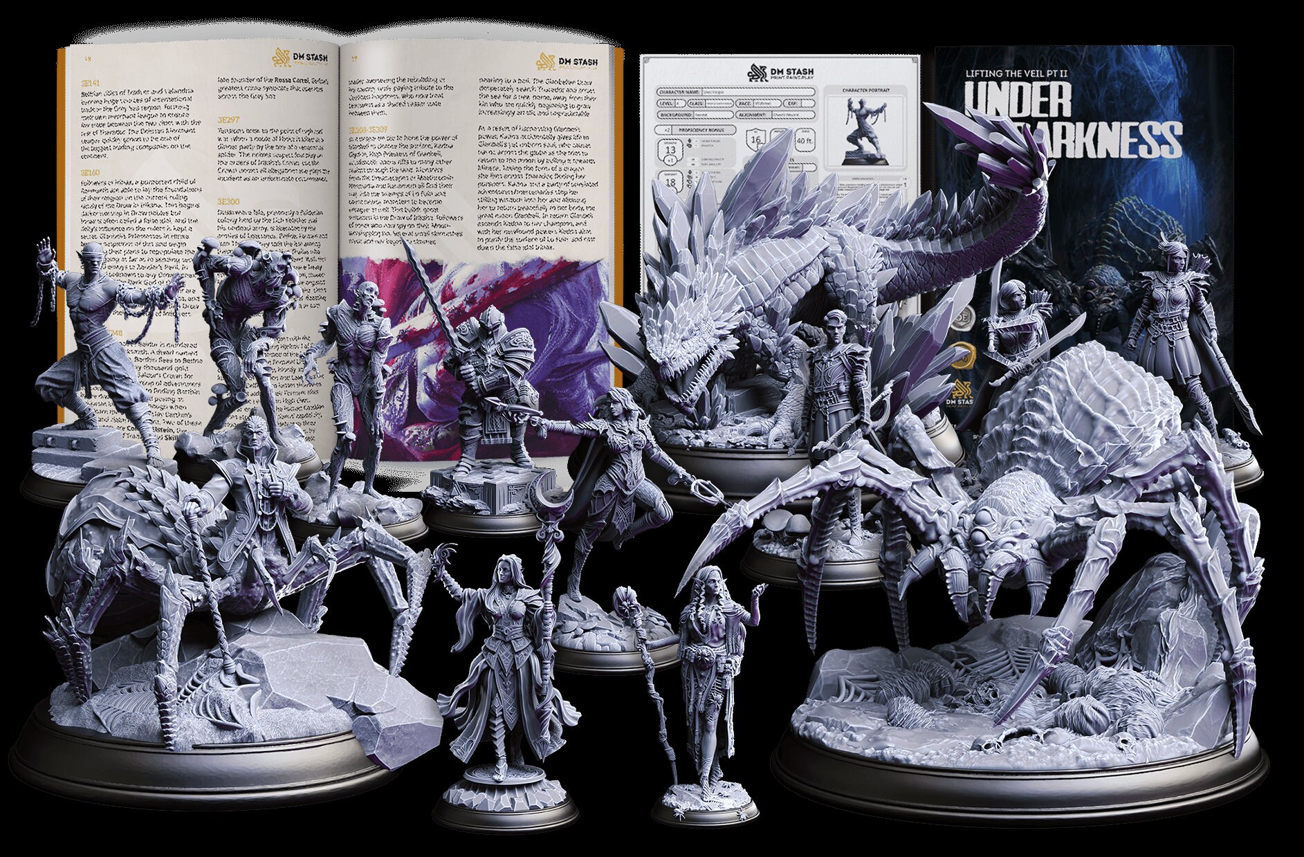 Bestandteile: Alle Miniaturen sowie alle englischen Drucke (vgl. https://www.dmstash.com/product/february-24-rpg-pack-under-darkness/)